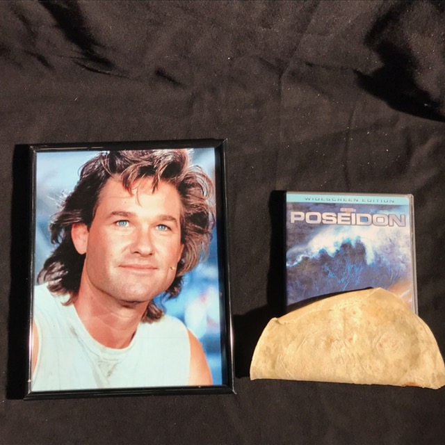 Finally, let’s say you’re giving out the 2006 remake of The Poseidon Adventure, Starring Kurt Russell (a hot item this year). Keep your new treasure safe in my new DVD holder! This soft, 100% real flour tortilla will keep your copy of The Poseiden Adventure covered in a soft, 100% real flour tortilla for three days before it fully hardens.